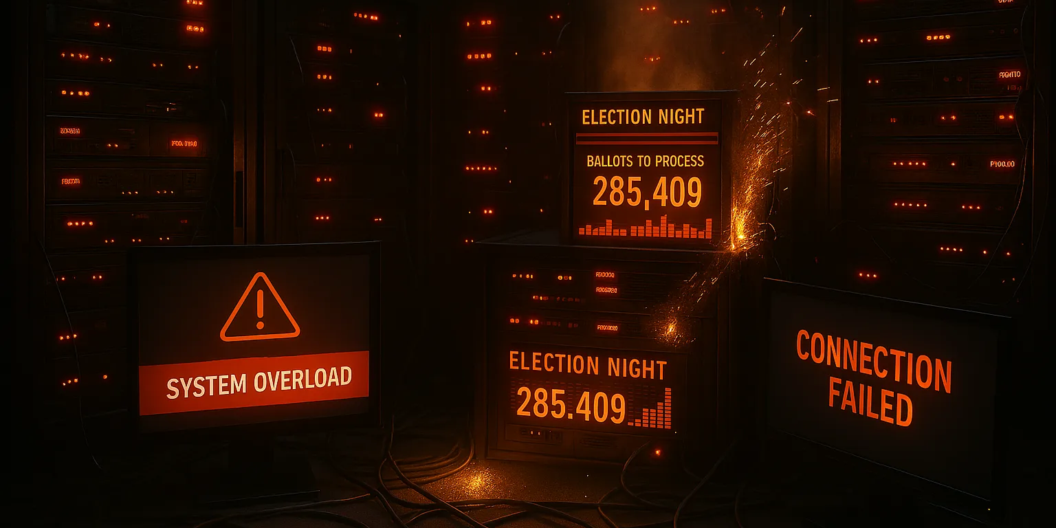 3) vēlēšanu naktī biļetenu par/pret atzīmju atpazīšanas sistēma nespēja pienācīgi darboties pārslodzes dēļ.